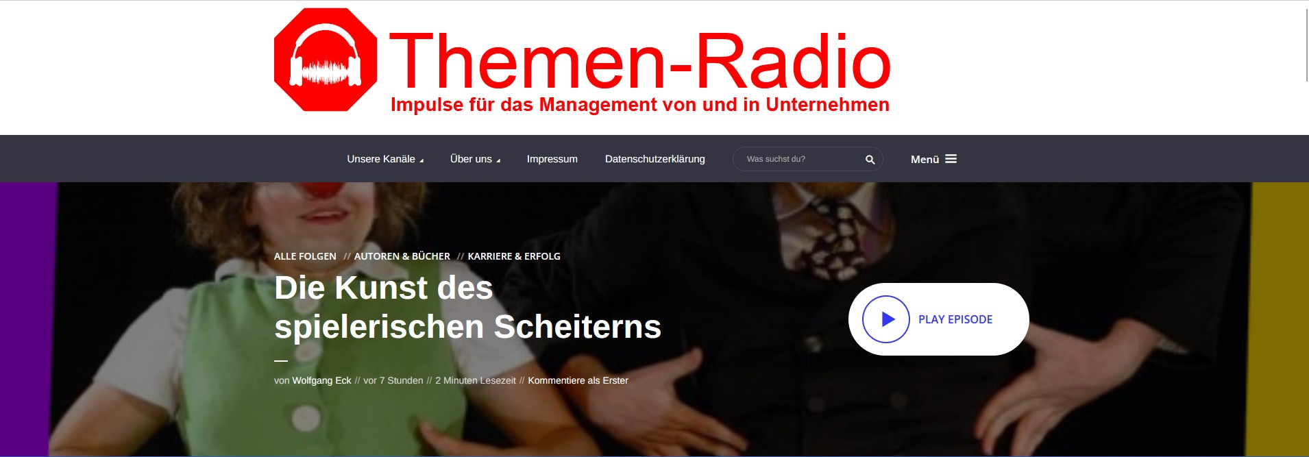 In der Wirtschaft wird das Scheitern erst seit den letzten Jahren als etwas Positives gefeiert: eine vermeintlich neue Erkenntnis. Bekannt als Failure- oder Fuckup-Night. Clowns haben diese Erkenntnis schon seit Jahrhunderten verinnerlicht. Niederlagen vermeiden wollen, geht irgendwann zwangsläufig schief, denn Stolpern ist ein fester Bestandteil unseres Lebens. Jeder Schritt, den wir nach vorne machen, beinhaltet ein Fallen. Einen potenziellen Absturz, den wir im letzten Moment abfangen. Ohne, dass wir dieses Risiko des Fallens und des Stolperns eingehen, kommen wir keinen Schritt voran. Ohne Scheitern also keine Fortbewegung. Wir scheitern uns sozusagen voran!